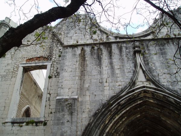 Como hago siempre en Lisboa, recalé varias veces en la Iglesia de Sao Domingos, junto al Rossio, lugar que me fascina por la extravagante textura de sus piedras interiores, asoladas implacablemente por el fuego. La restauración hecha ha respetado estas señales –imposible por otra parte sacar los impresionantes lametones que las llamas dejaron en las columnas del templo– y el conjunto estremece por esa especie de neobarroquismo creado por los elementos.
